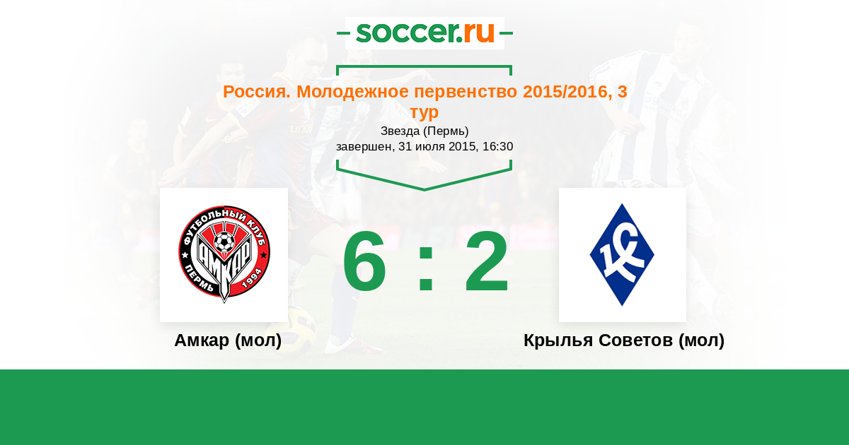 Россия. Премьер-Лига U21 25.09.2016 Амкар (мол) Логотип футбольный клуб Амкар (мол) (Пермь) 1:1 Логотип футбольный клуб Крылья Советов (мол) (Самара) Крылья Советов (мол)