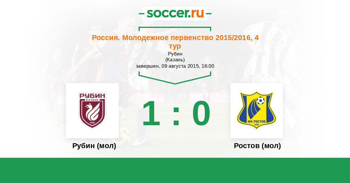 Россия. Премьер-Лига U21 24.10.2009 Ростов (мол) Логотип футбольный клуб Ростов (мол) (Ростов-на-Дону) 1:0 Логотип футбольный клуб Рубин (мол) (Казань) Рубин (мол)