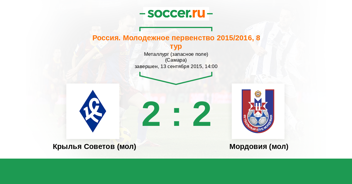 История матча Крылья Советов (мол) против Мордовия (мол)