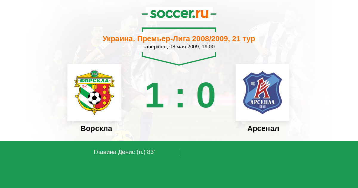 Протокол матча Ворскла против Арсенал