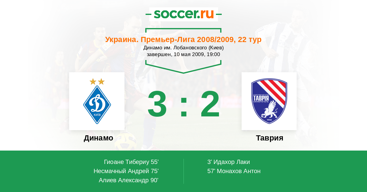 Протокол матча Динамо против Таврия