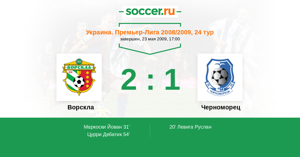 Протокол матча Ворскла против Черноморец