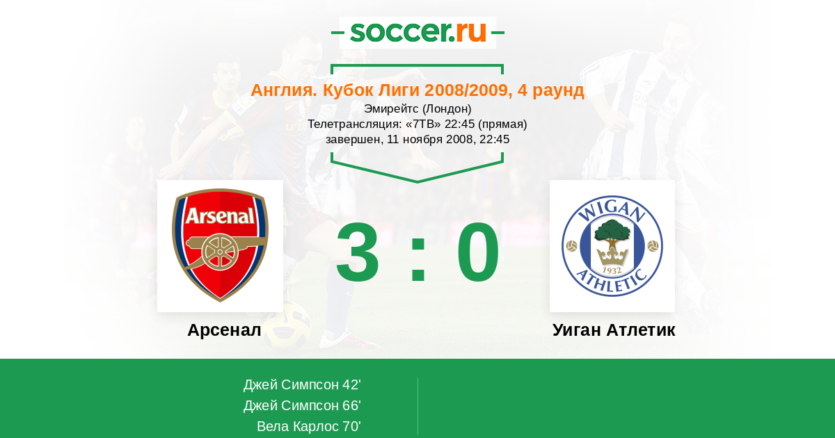 Протокол матча Арсенал против Уиган Атлетик