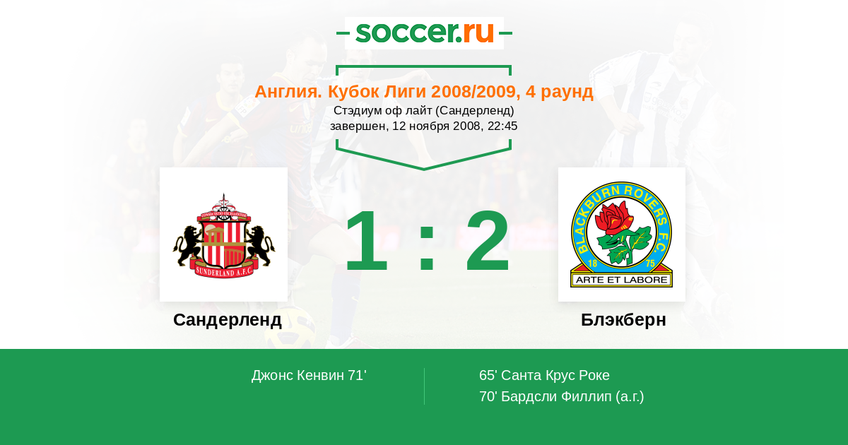 Протокол матча Сандерленд против Блэкберн