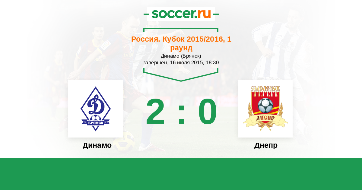 Россия. Кубок 29.07.2014 Динамо Брянск Логотип футбольный клуб Динамо Брянск 3:1 Логотип футбольный клуб Днепр (Смоленск) Днепр
