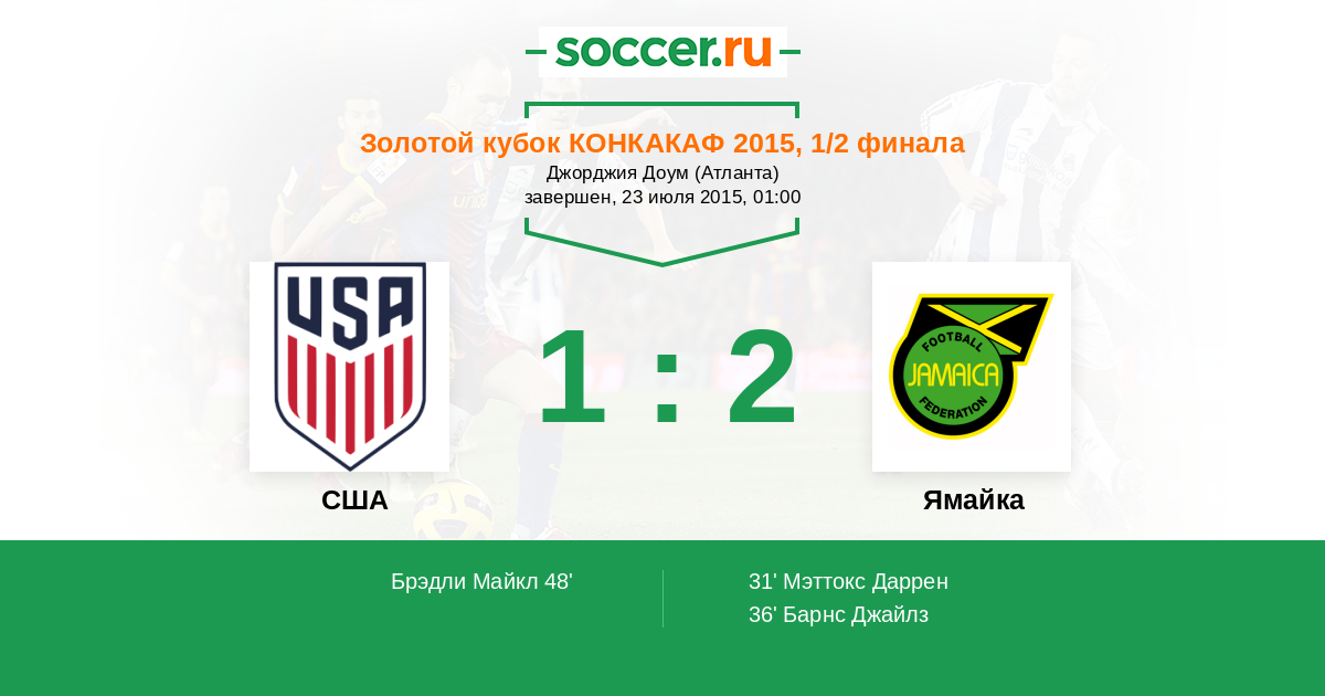 Протокол матча США против Ямайка