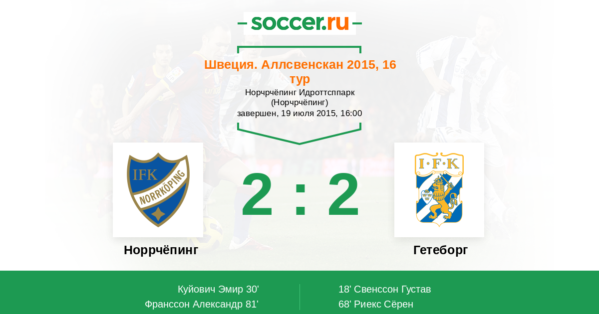 Протокол матча Норрчёпинг против Гетеборг