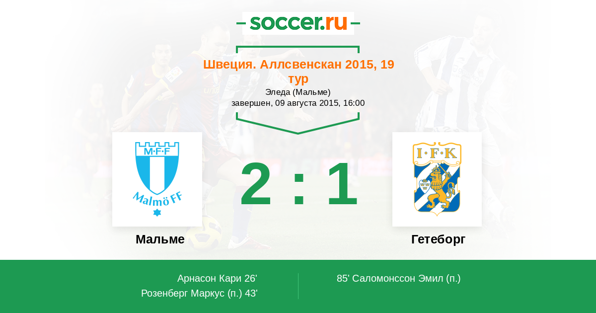 Протокол матча Мальме против Гетеборг