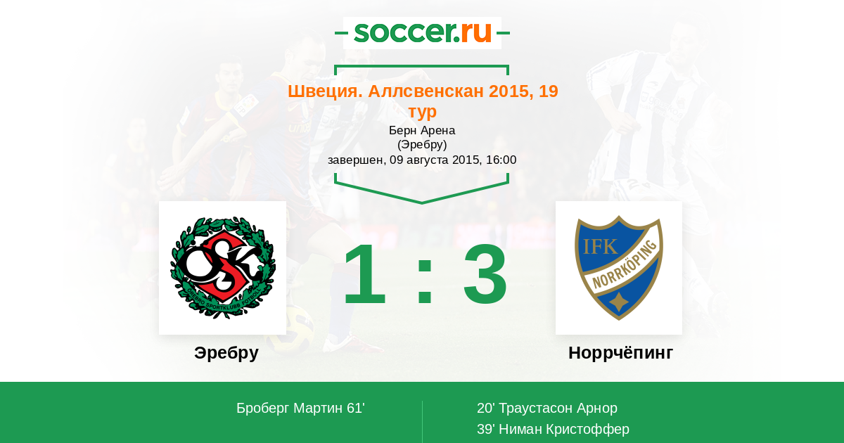 Протокол матча Эребру против Норрчёпинг