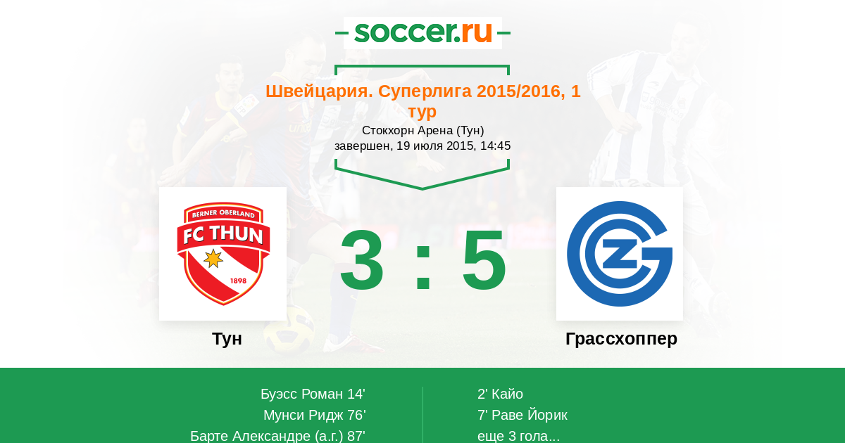 Протокол матча Тун против Грассхоппер