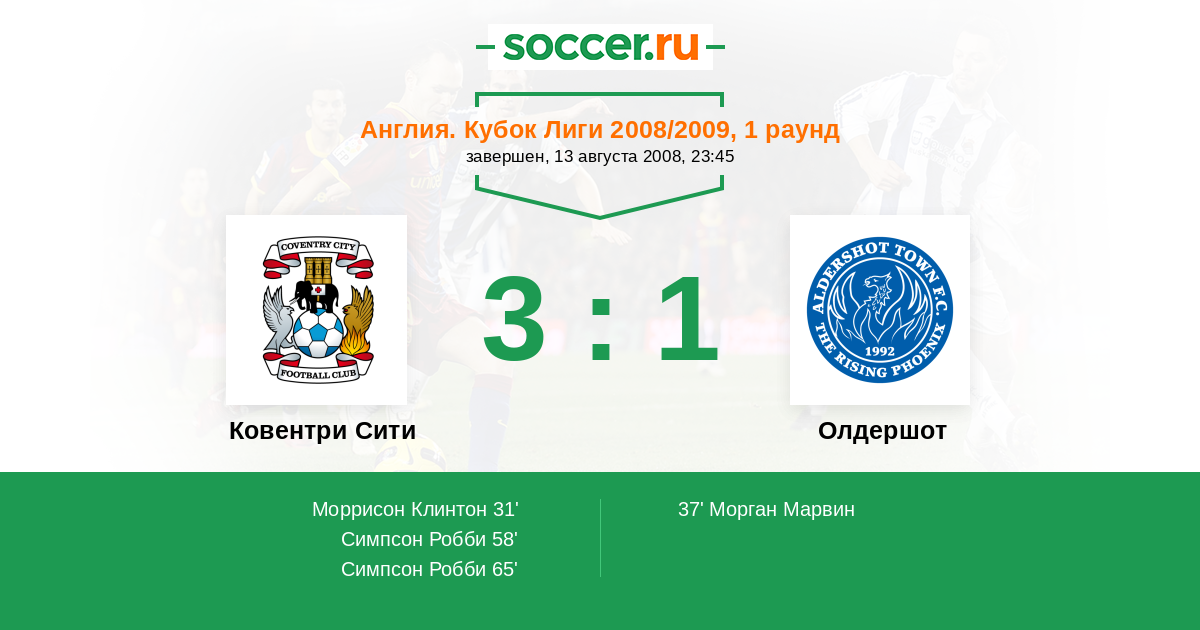 Протокол матча Ковентри Сити против Олдершот
