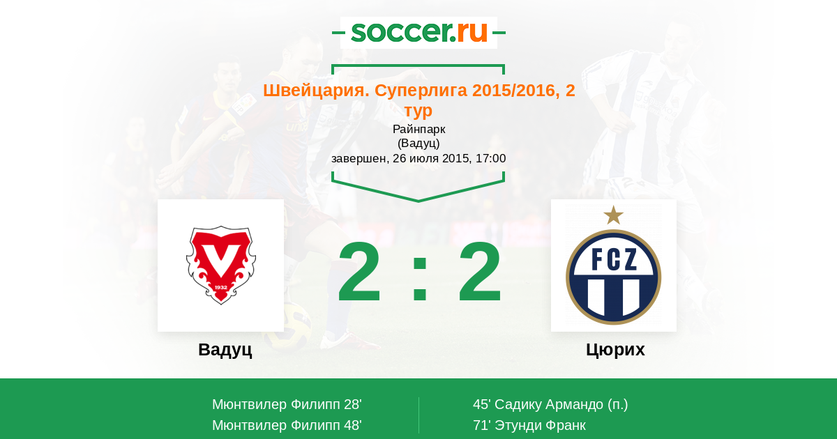 Протокол матча Вадуц против Цюрих