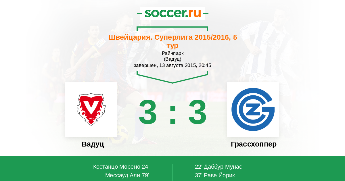 Протокол матча Вадуц против Грассхоппер