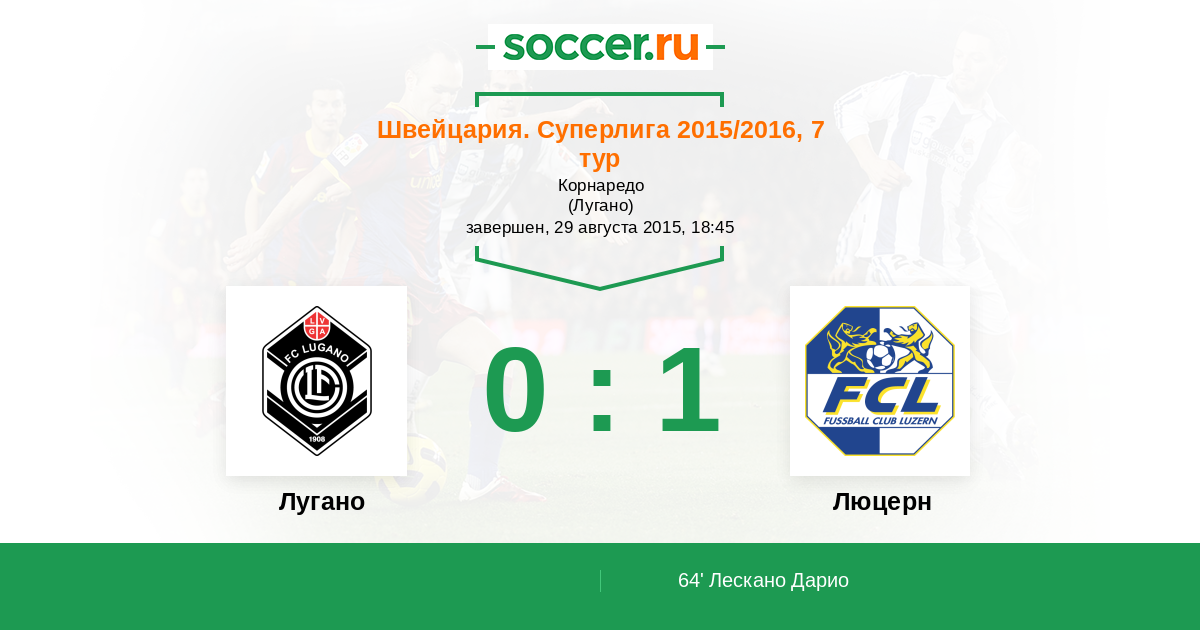 Протокол матча Лугано против Люцерн