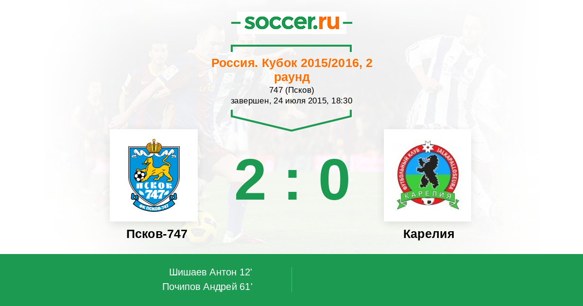 Протокол матча Псков-747 против Карелия