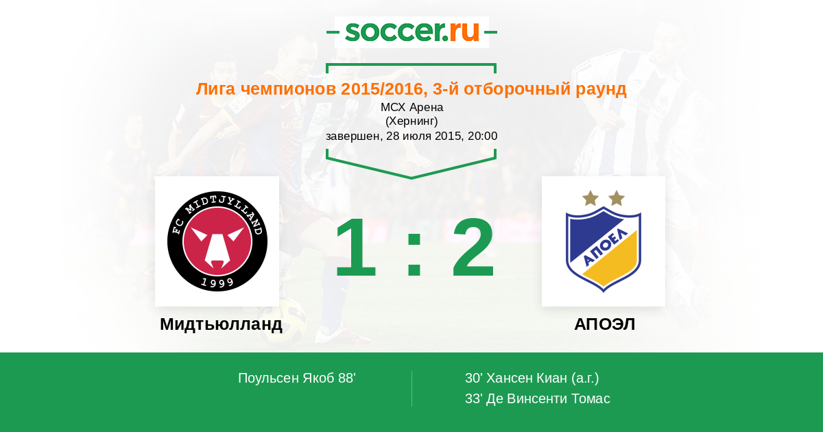 Протокол матча Мидтьюлланд против АПОЭЛ