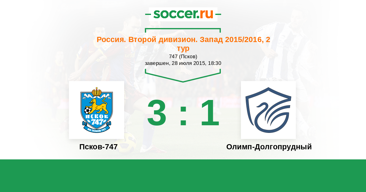 Россия. Вторая лига. Группа 2 17.10.2014 Псков-747 Логотип футбольный клуб Псков-747 2:3 Логотип футбольный клуб Долгопрудный Долгопрудный