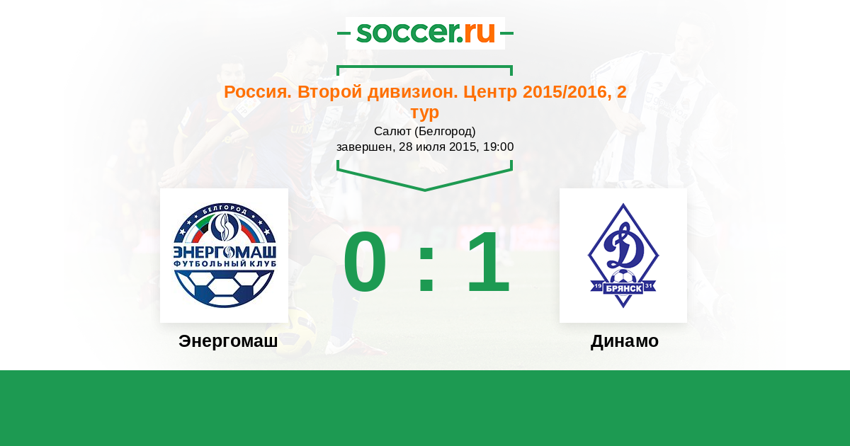 Россия. Вторая лига. Группа 3 28.07.2016 Энергомаш Логотип футбольный клуб Энергомаш (Белгород) 1:0 Логотип футбольный клуб Динамо Брянск Динамо Брянск