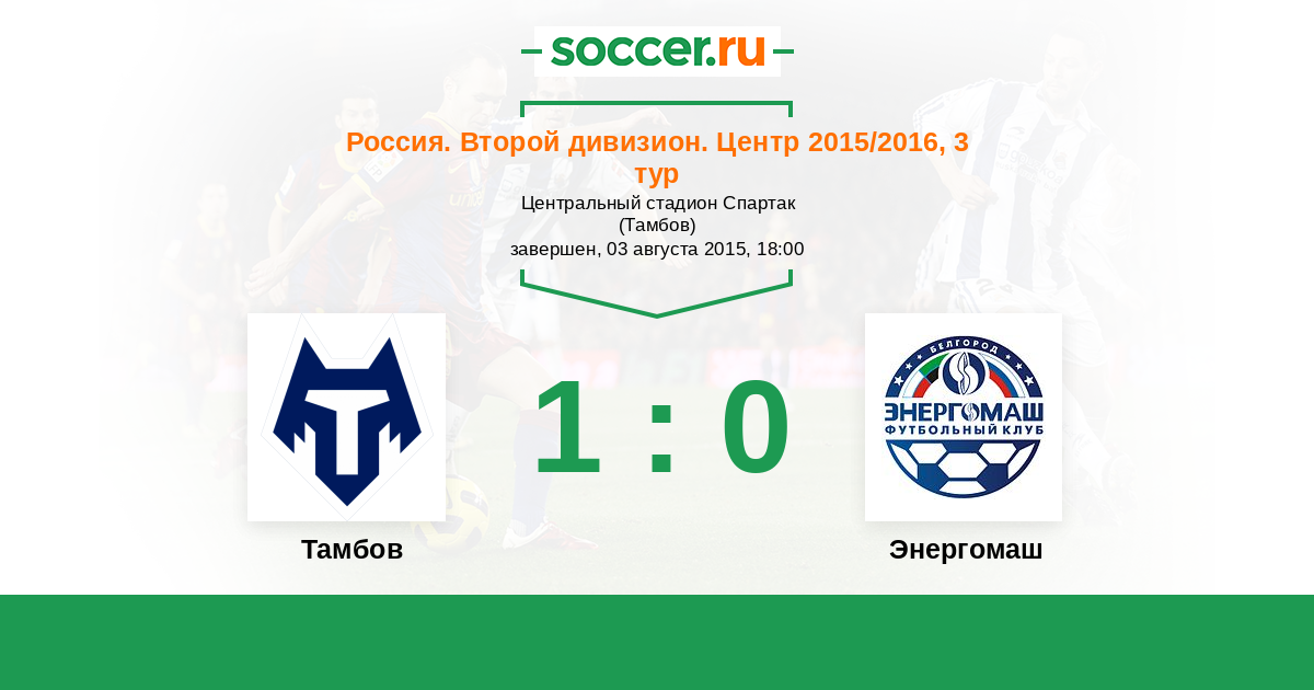 Россия. Вторая лига. Группа 3 25.10.2015 Энергомаш Логотип футбольный клуб Энергомаш (Белгород) 1:1 Логотип футбольный клуб Тамбов Тамбов