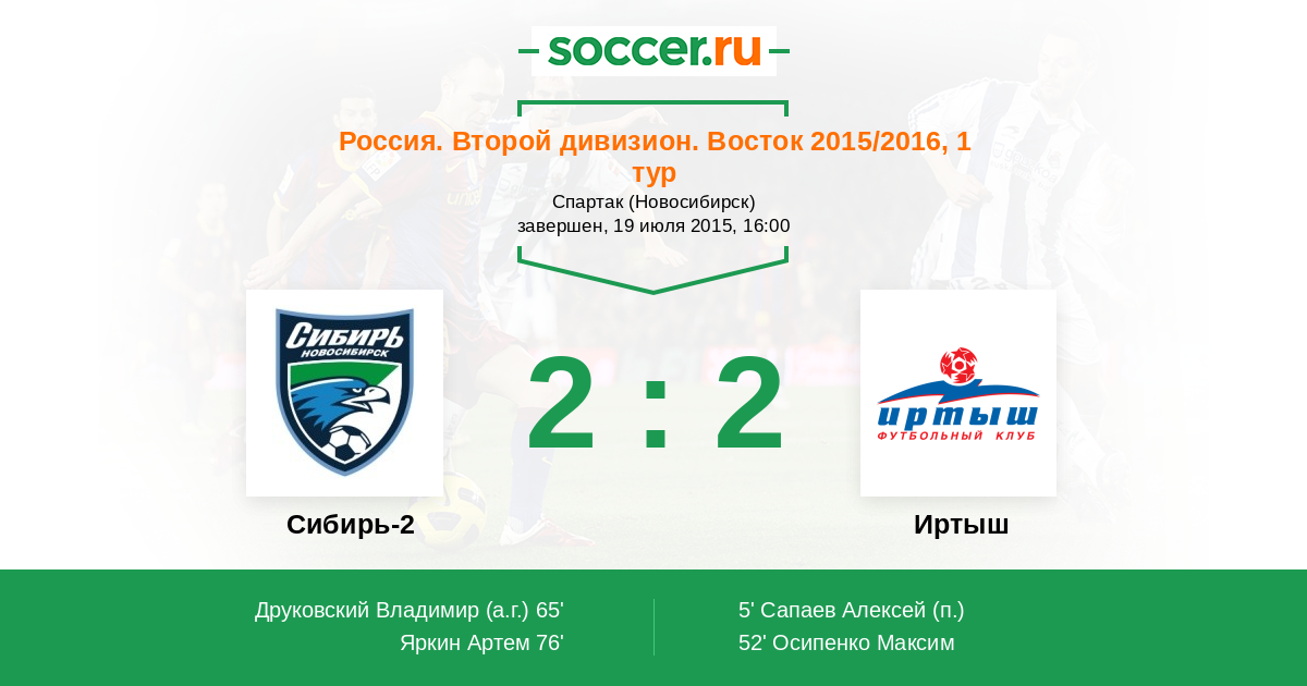 Протокол матча Сибирь-2 против Иртыш