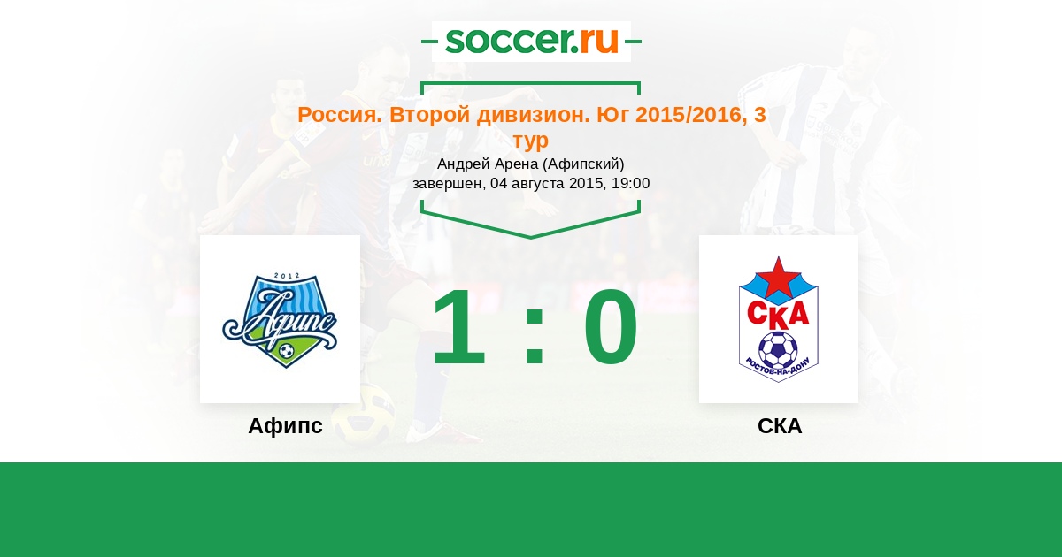 Россия. Вторая лига. Группа 1 25.10.2015 СКА Логотип футбольный клуб СКА (Ростов-на-Дону) 1:2 Логотип футбольный клуб Афипс (Афипский) Афипс
