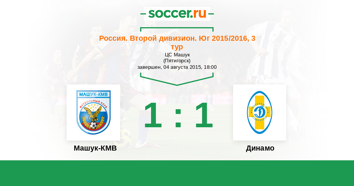 Россия. Вторая лига. Группа 1 06.09.2010 Машук-КМВ Логотип футбольный клуб Машук-КМВ (Пятигорск) 2:2 Логотип футбольный клуб Динамо Ставрополь Динамо Ставрополь