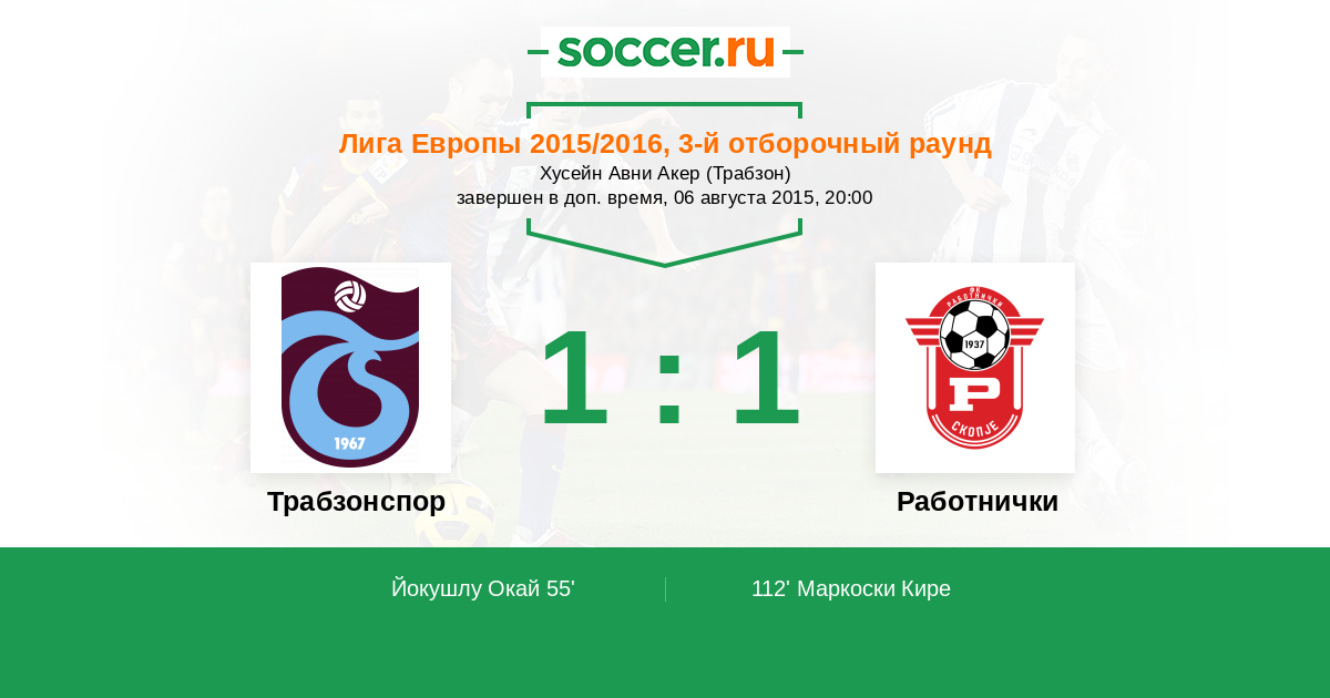 Протокол матча Трабзонспор против Работнички