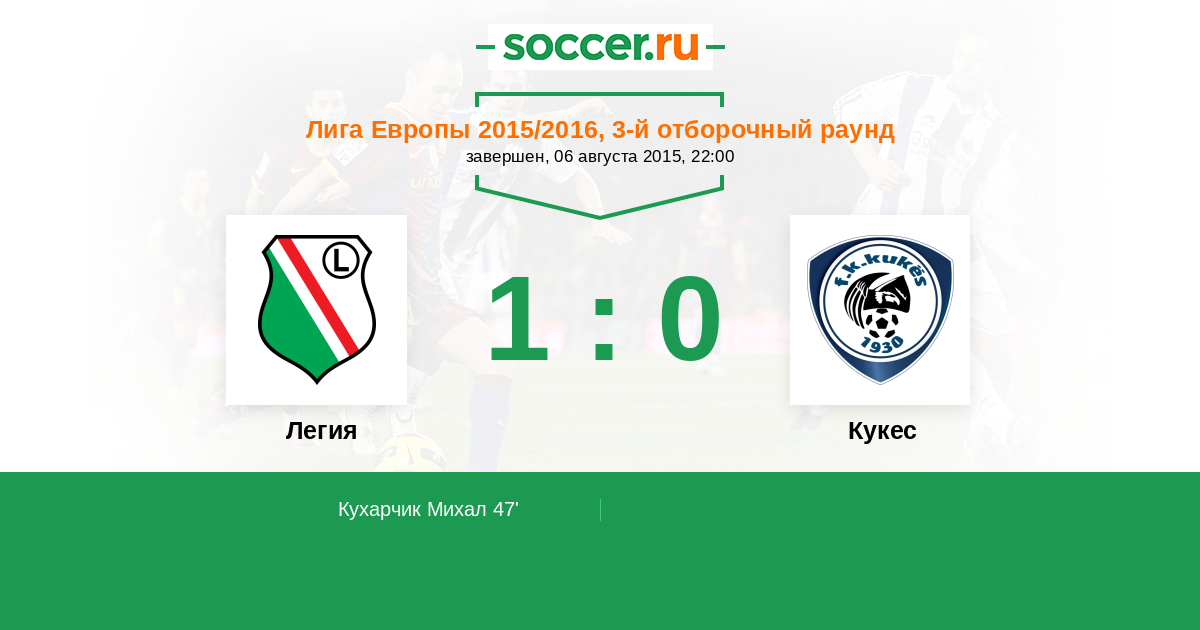 Протокол матча Легия против Кукес