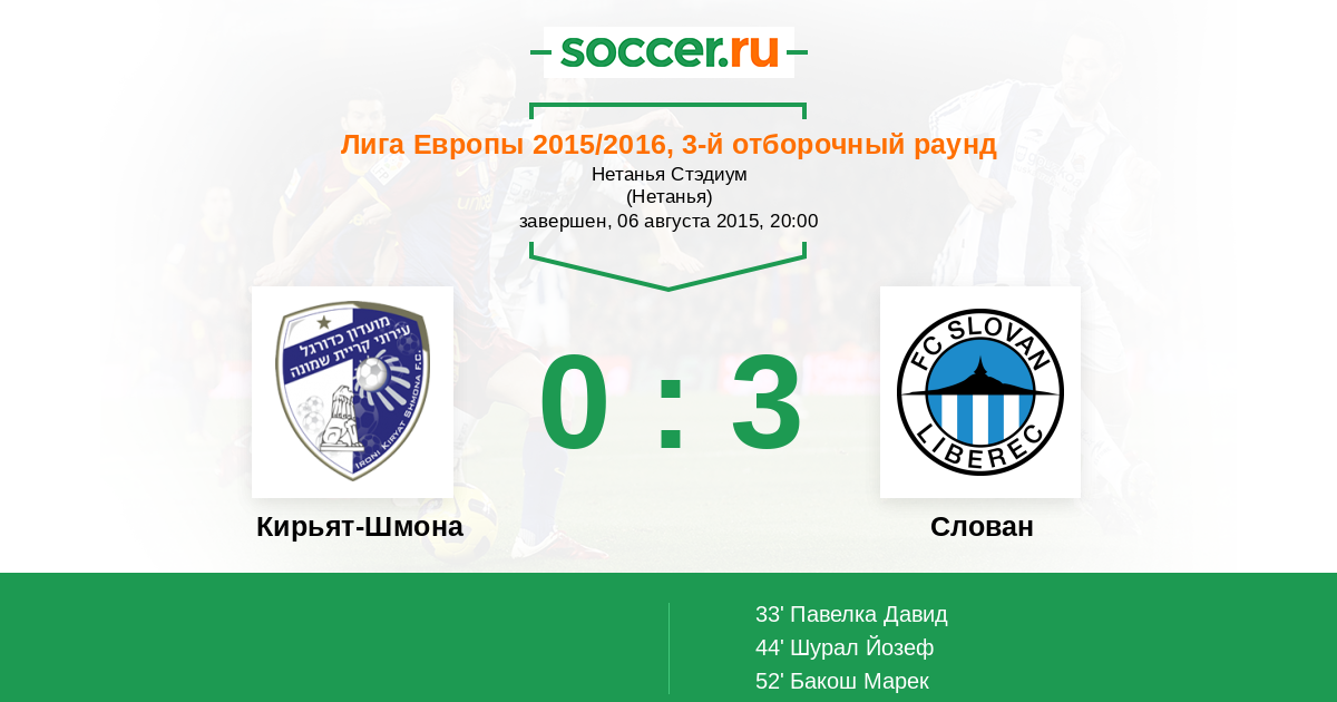 Протокол матча Кирьят-Шмона против Слован