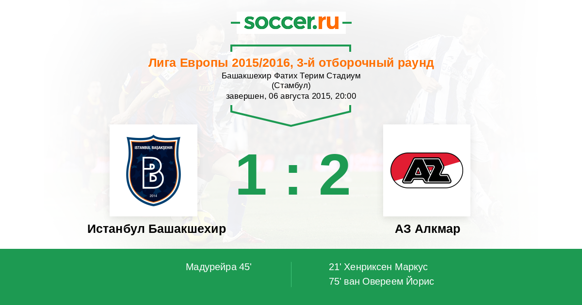 Протокол матча Истанбул Башакшехир против АЗ Алкмар