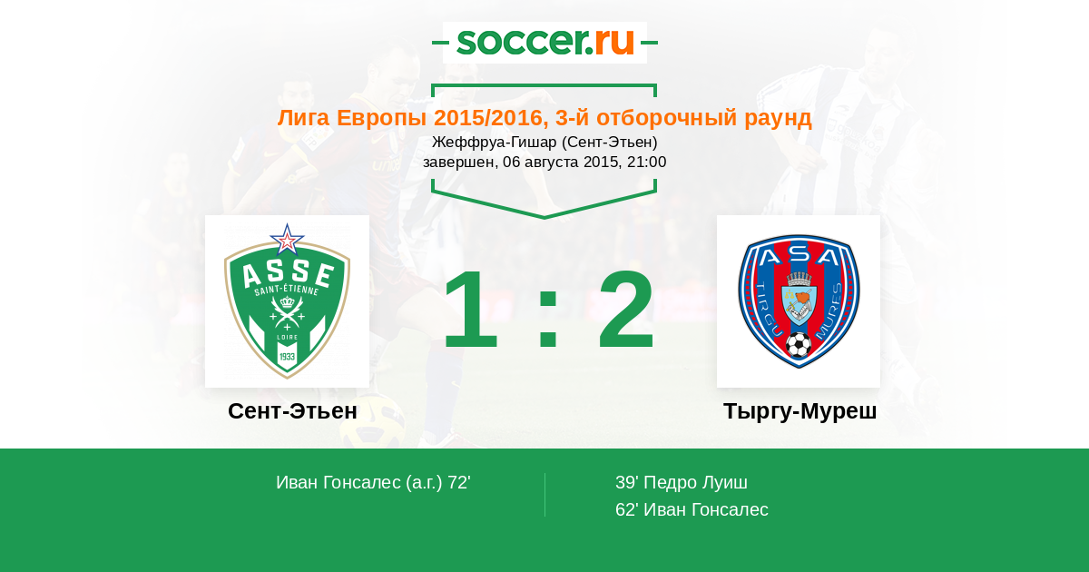 Протокол матча Сент-Этьен против Тыргу-Муреш