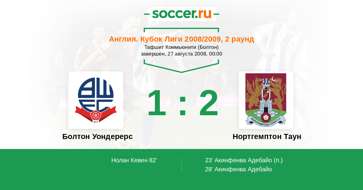 Протокол матча Болтон Уондерерс против Нортгемптон Таун