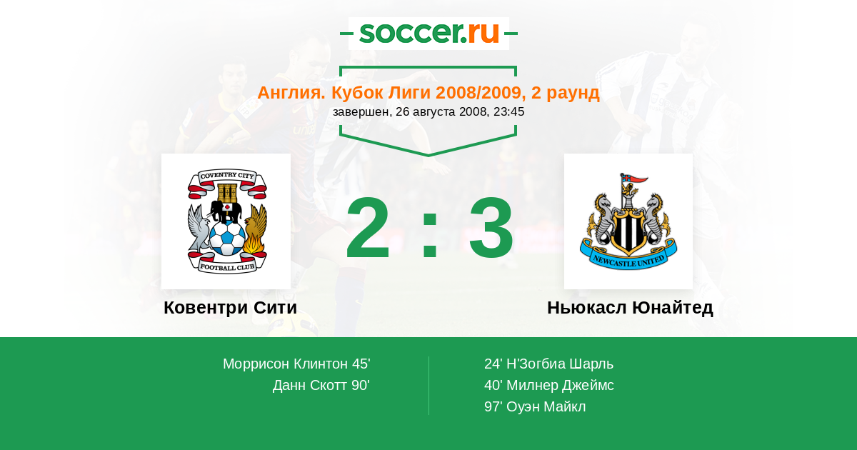 Протокол матча Ковентри Сити против Ньюкасл Юнайтед