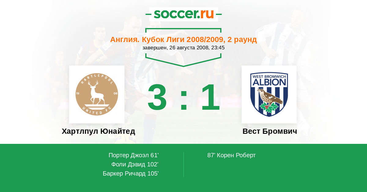 Протокол матча Хартлпул Юнайтед против Вест Бромвич
