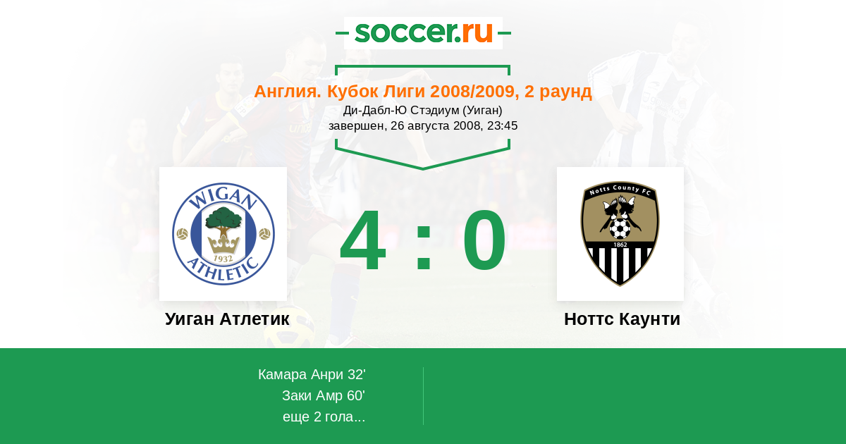 Протокол матча Уиган Атлетик против Ноттс Каунти