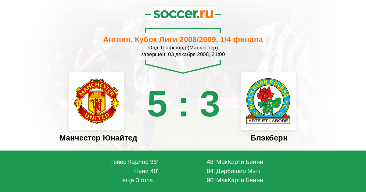 Протокол матча Манчестер Юнайтед против Блэкберн