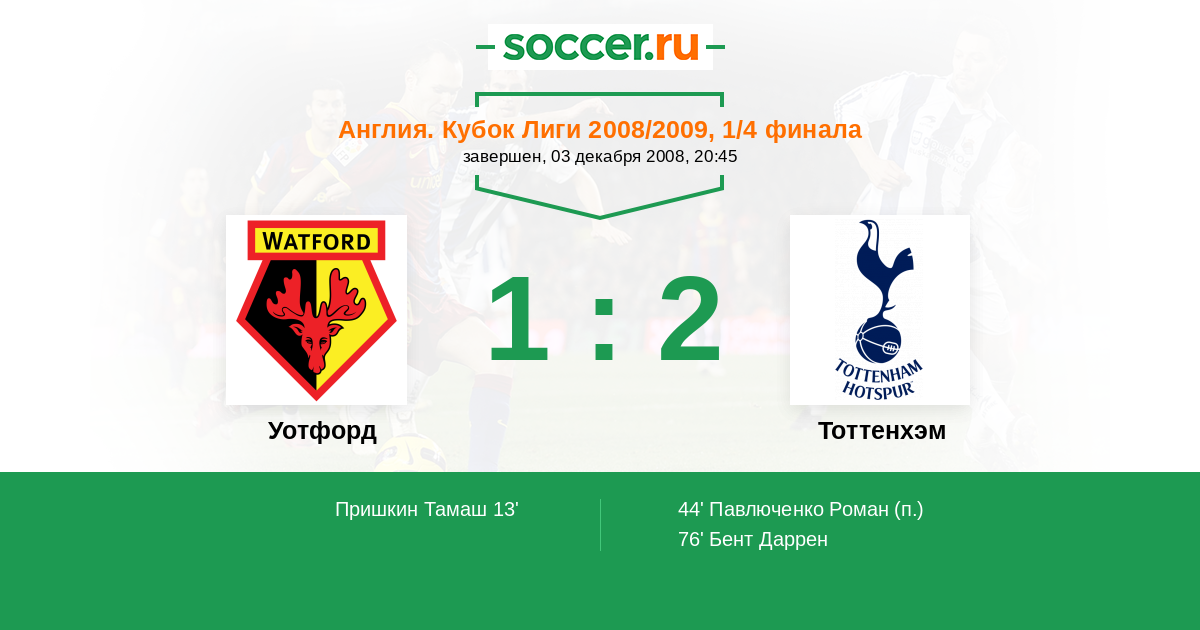 Протокол матча Уотфорд против Тоттенхэм