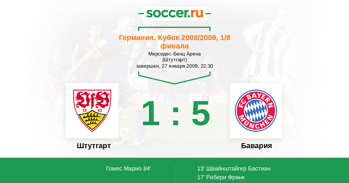 Протокол матча Штутгарт против Бавария
