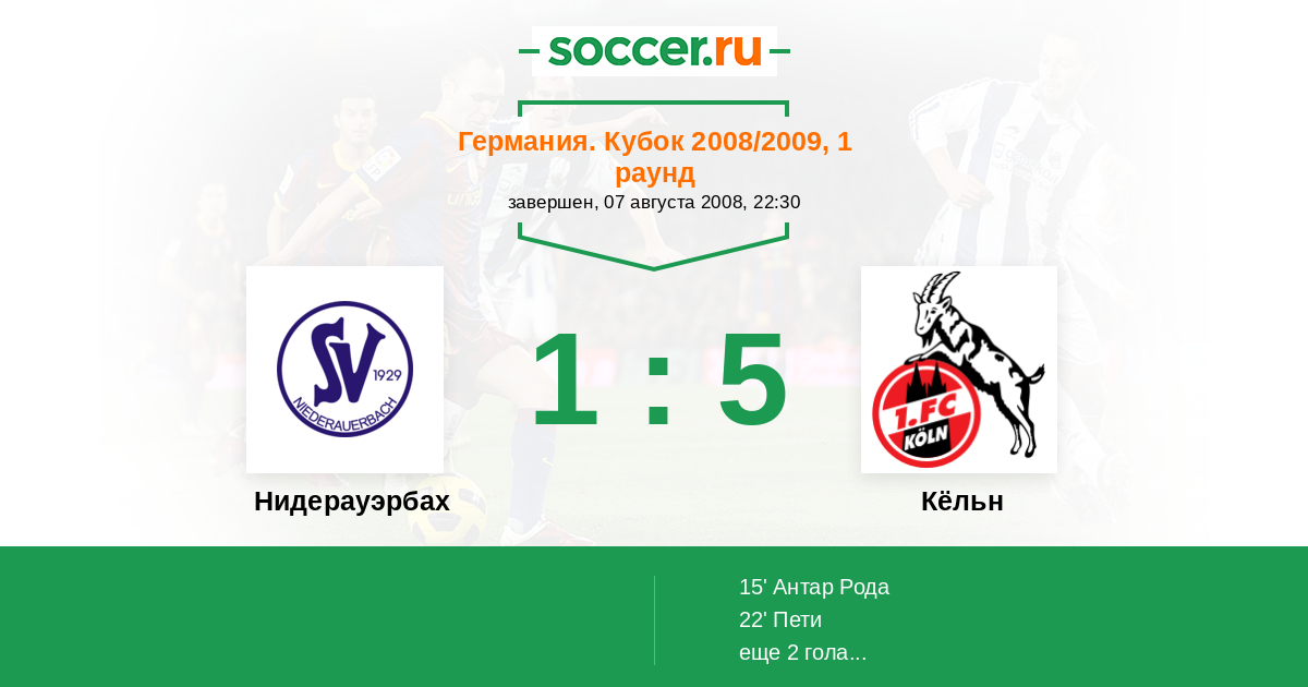 Протокол матча Нидерауэрбах против Кёльн