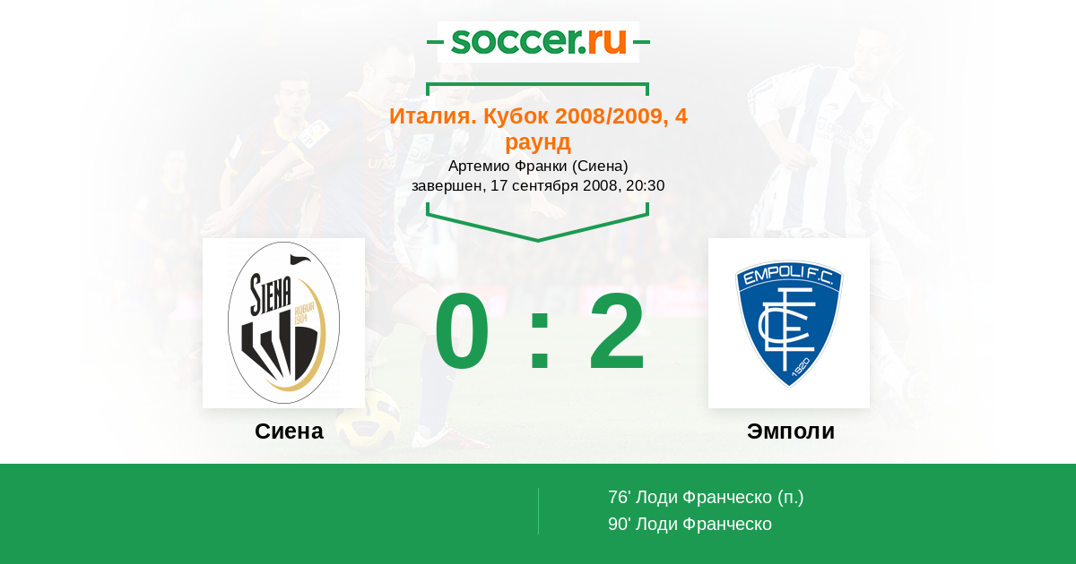 Протокол матча Сиена против Эмполи