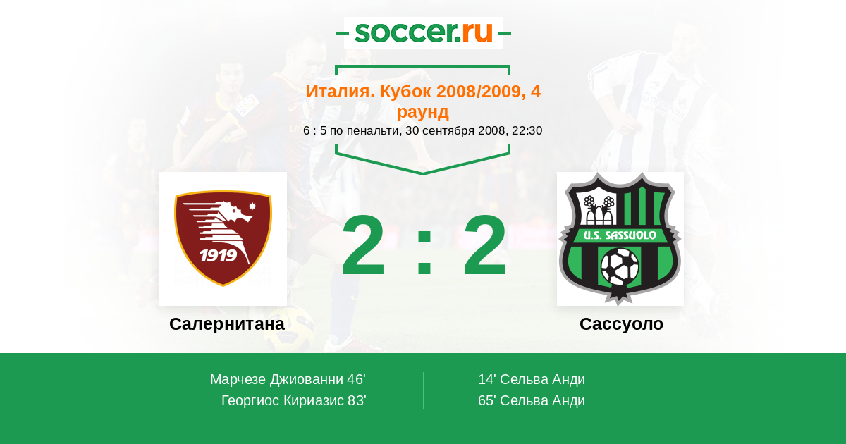 Протокол матча Салернитана против Сассуоло