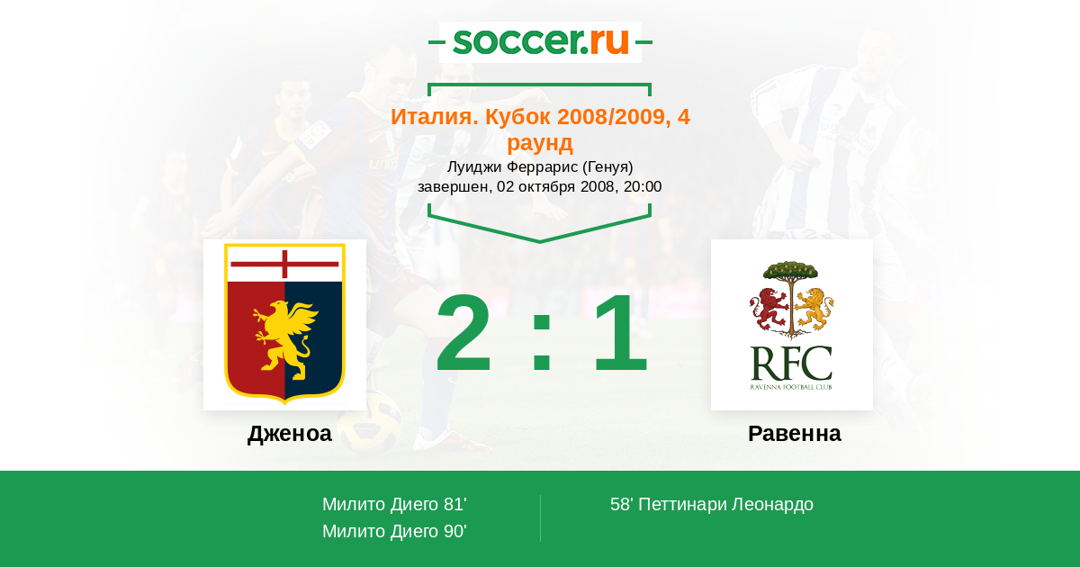 Протокол матча Дженоа против Равенна