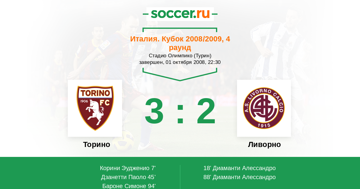 Протокол матча Торино против Ливорно