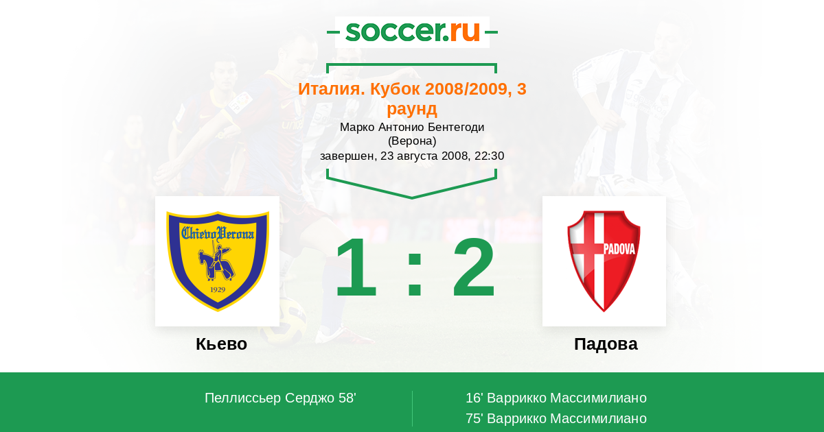 Протокол матча Кьево против Падова