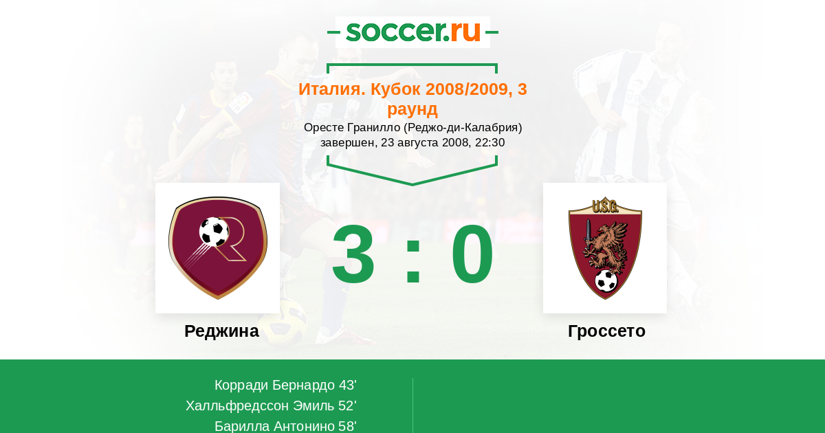 Протокол матча Реджина против Гроссето