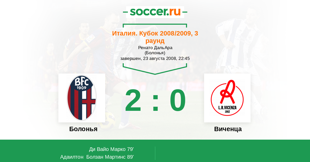 Протокол матча Болонья против Виченца