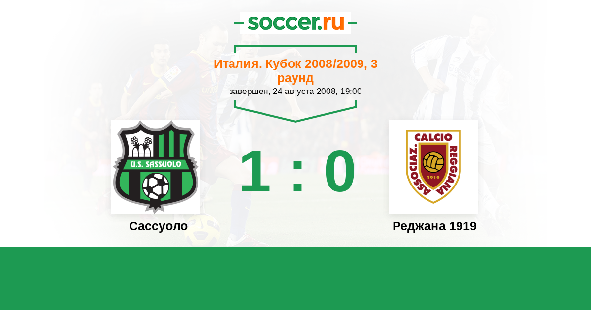 История матча Сассуоло против Реджана 1919