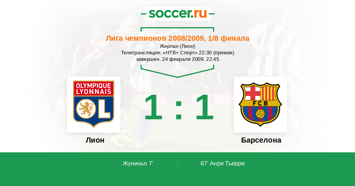 Протокол матча Лион против Барселона