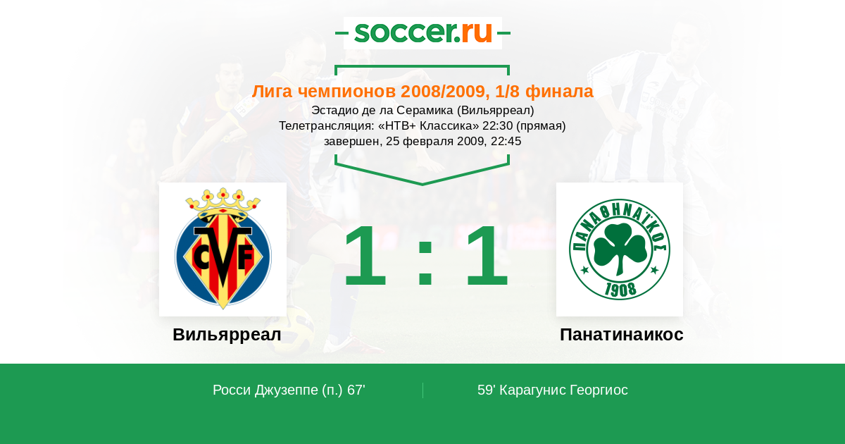 Протокол матча Вильярреал против Панатинаикос
