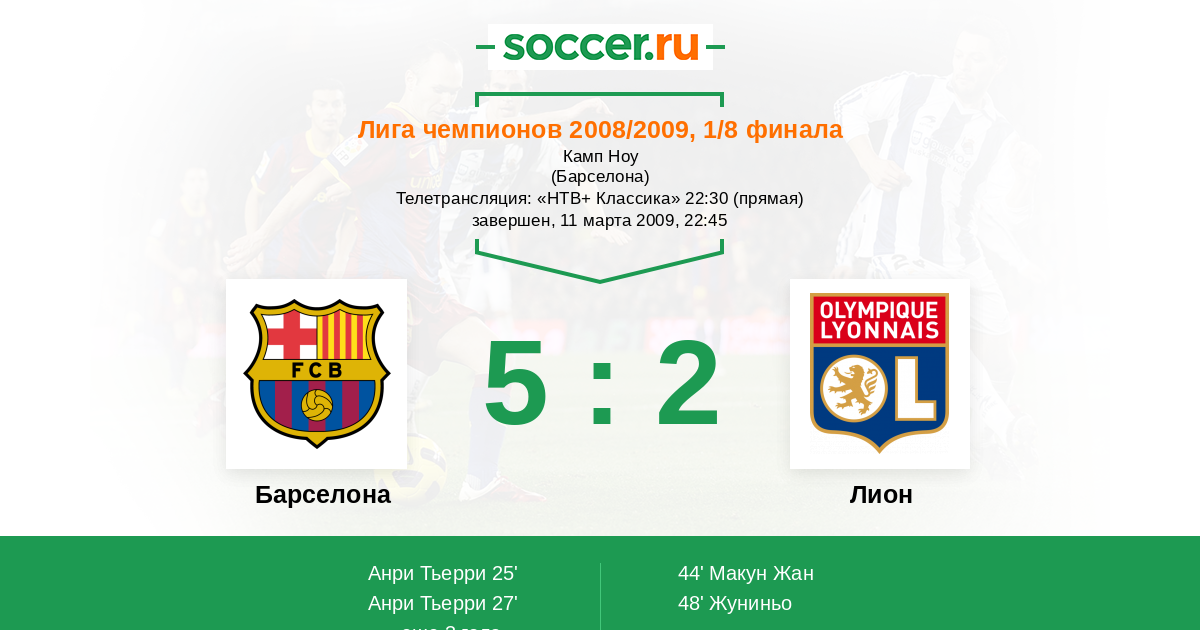 Протокол матча Барселона против Лион